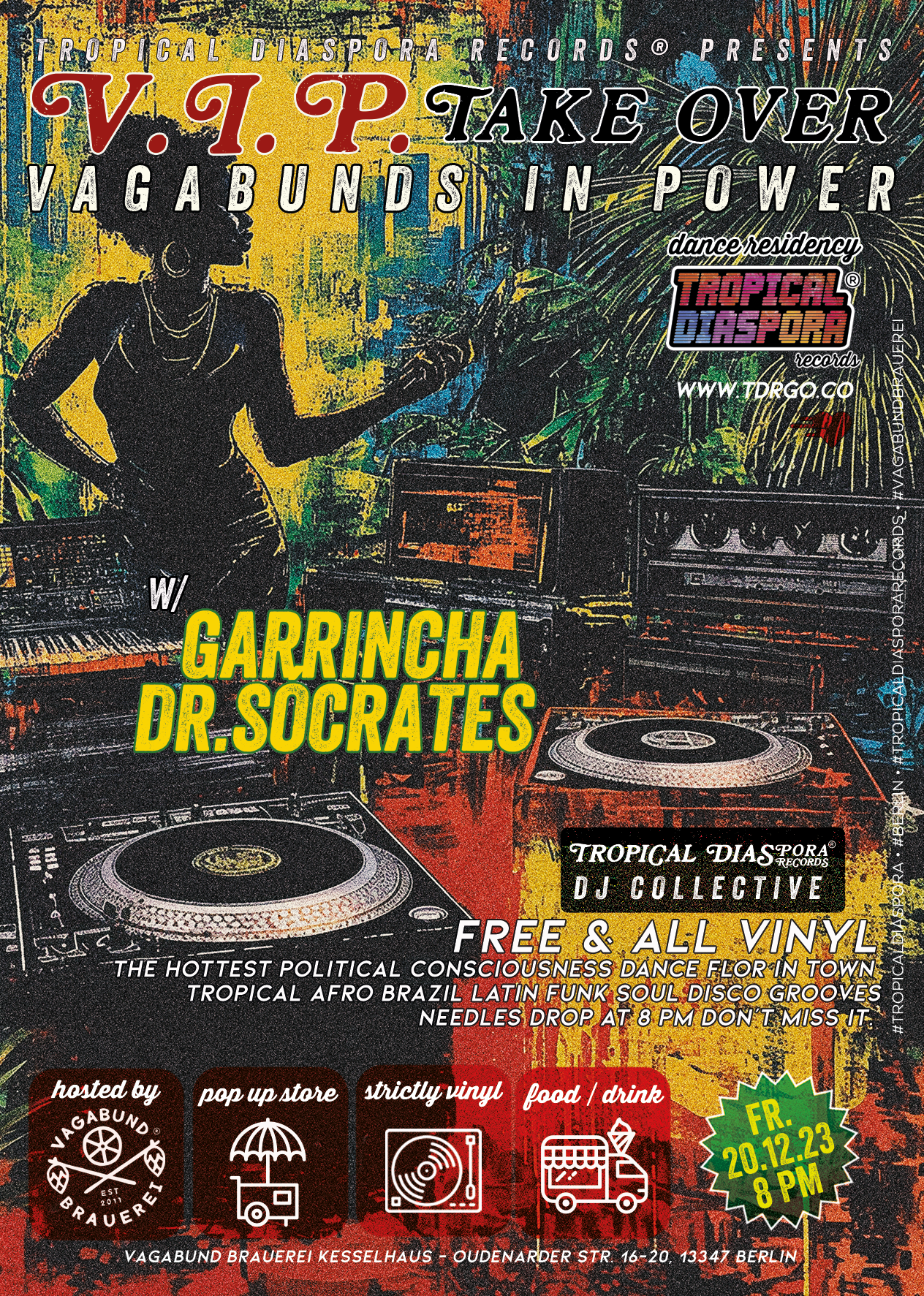 Tropical Diaspora Records presents the V.I.P. TAKE OVER - 8 to 12 pm W/ TROPICAL DIASPORA RECORDS @tropical_diaspora_records Show Case and 7 inch strictly vinyl DJ Set W/ Djs GArRinchA & Dr.Sócrates