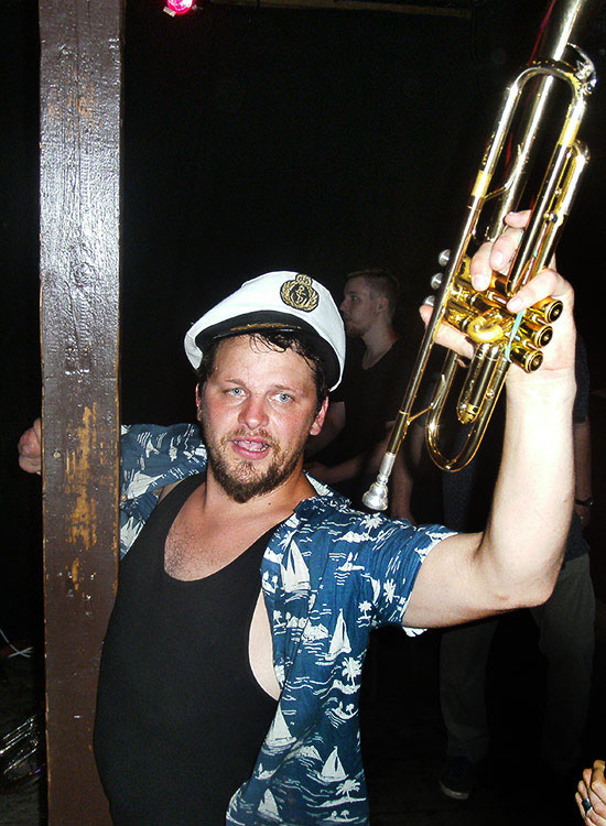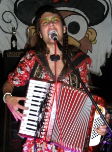 A touch of South America blew over the wooden floor of the yacht club on the Frankfurt Mainufer. The music collective LA FANFARRIA DEL CAPITAN from Argentina had announced to the audience the explosive mixture of Balkan Beat, Cumbia, Rock, Tango and Ska. Headed by Frontwoman Victoria Cornejo (on the right) on the accordion, the six-headed combo entered yesterday evening the approximately half-filled interior of the ship to celebrate a sultry hot Latino party.★