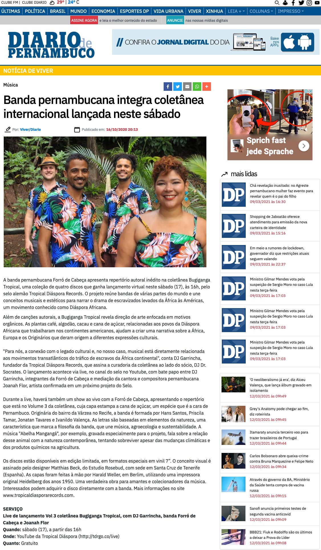 Berlin Oct 16 (TD®R): Forró de Cabeça e Coletânea Bugiganga Tropical – Faixa Livre – 16.10.20