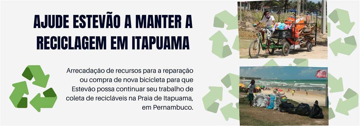 Meu nome é Estevão e, desde 2015, comecei um trabalho de coleta seletiva na Praia de Itapuama, em Cabo de Santo Agostinho/PE, através da Instituição Onda Limpa.