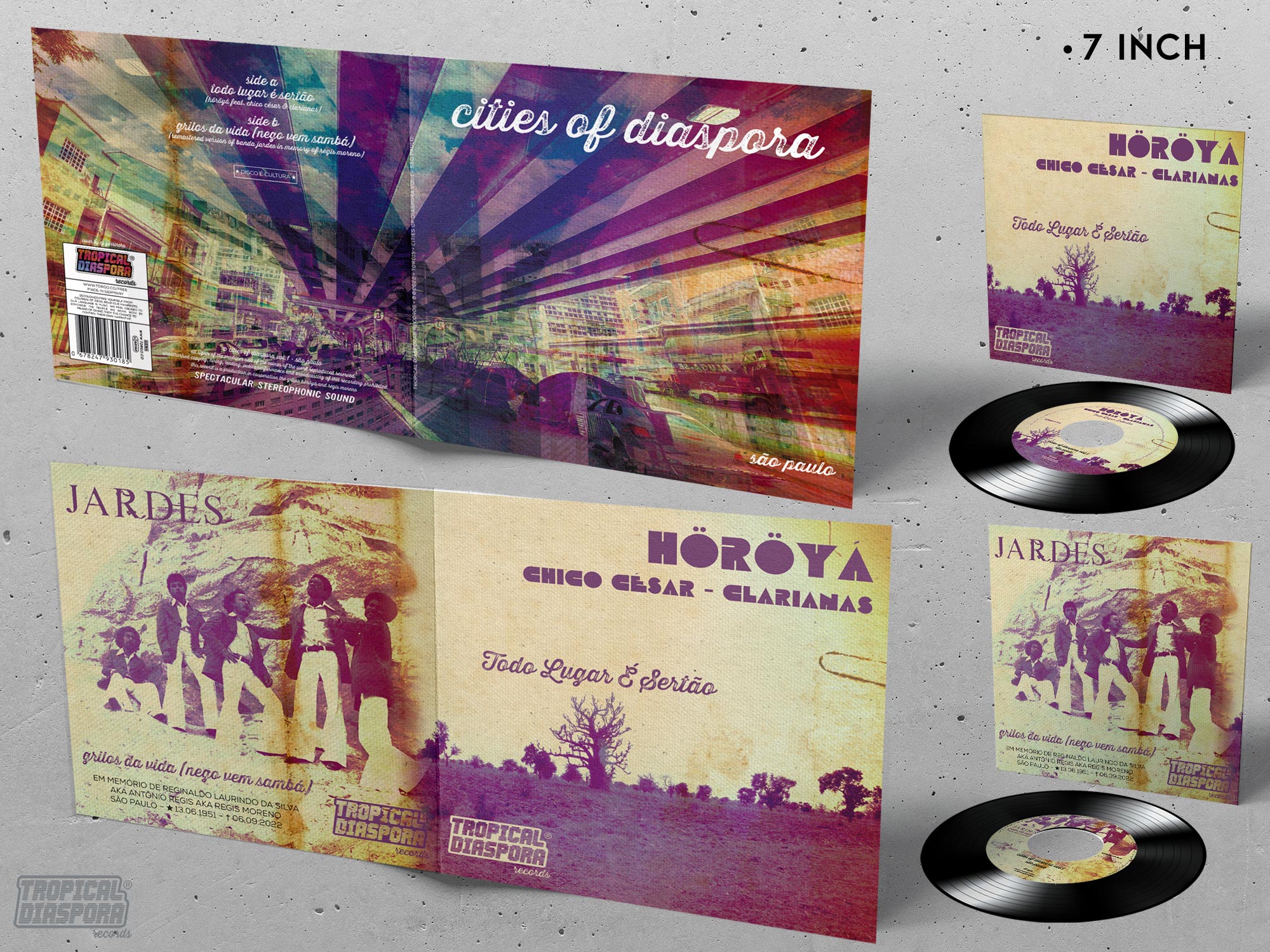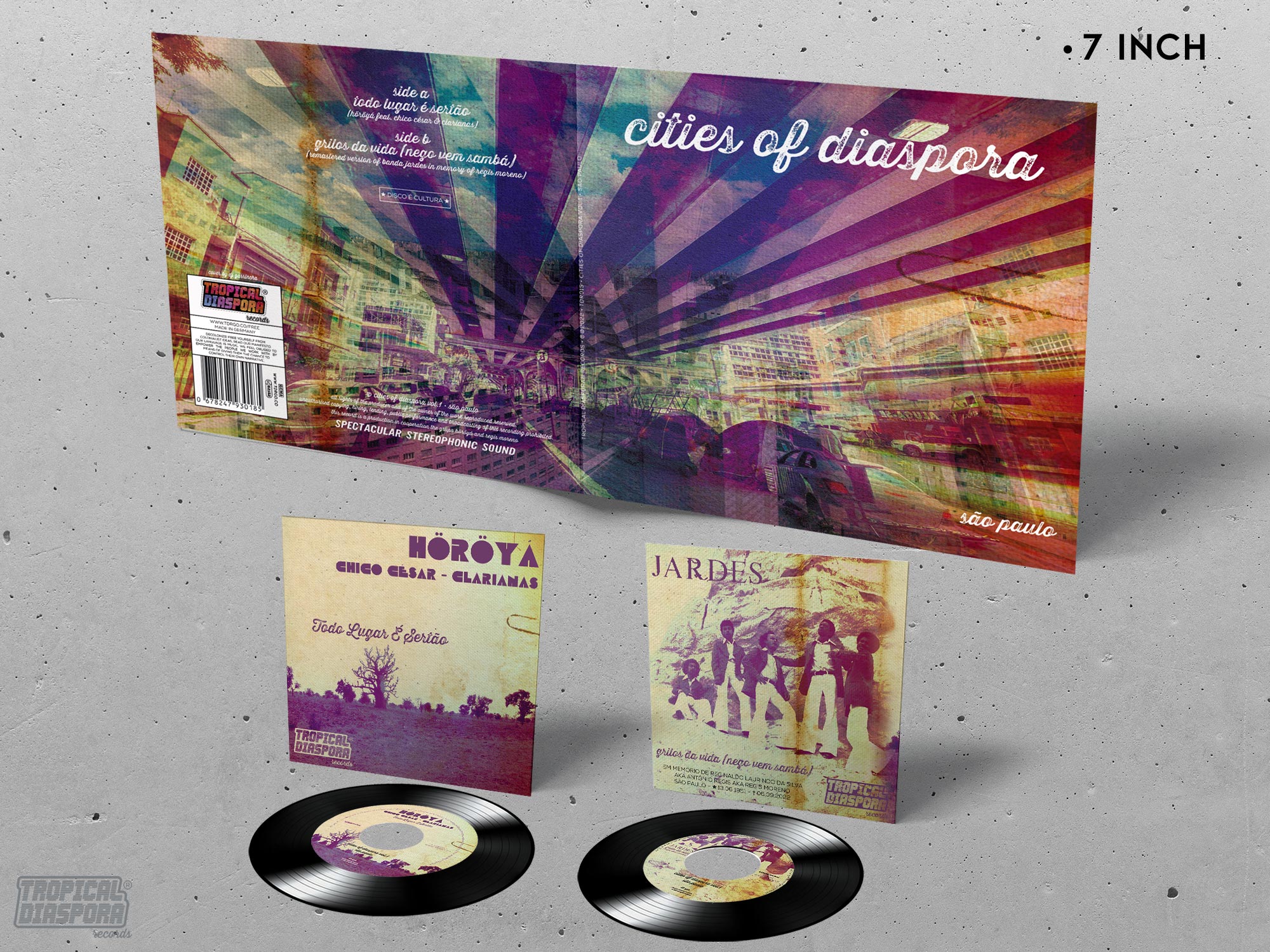 First release in the Cities of the Diaspora 7 inch vinyl series. São Paulo is in the spotlight with a single featuring two great bands.