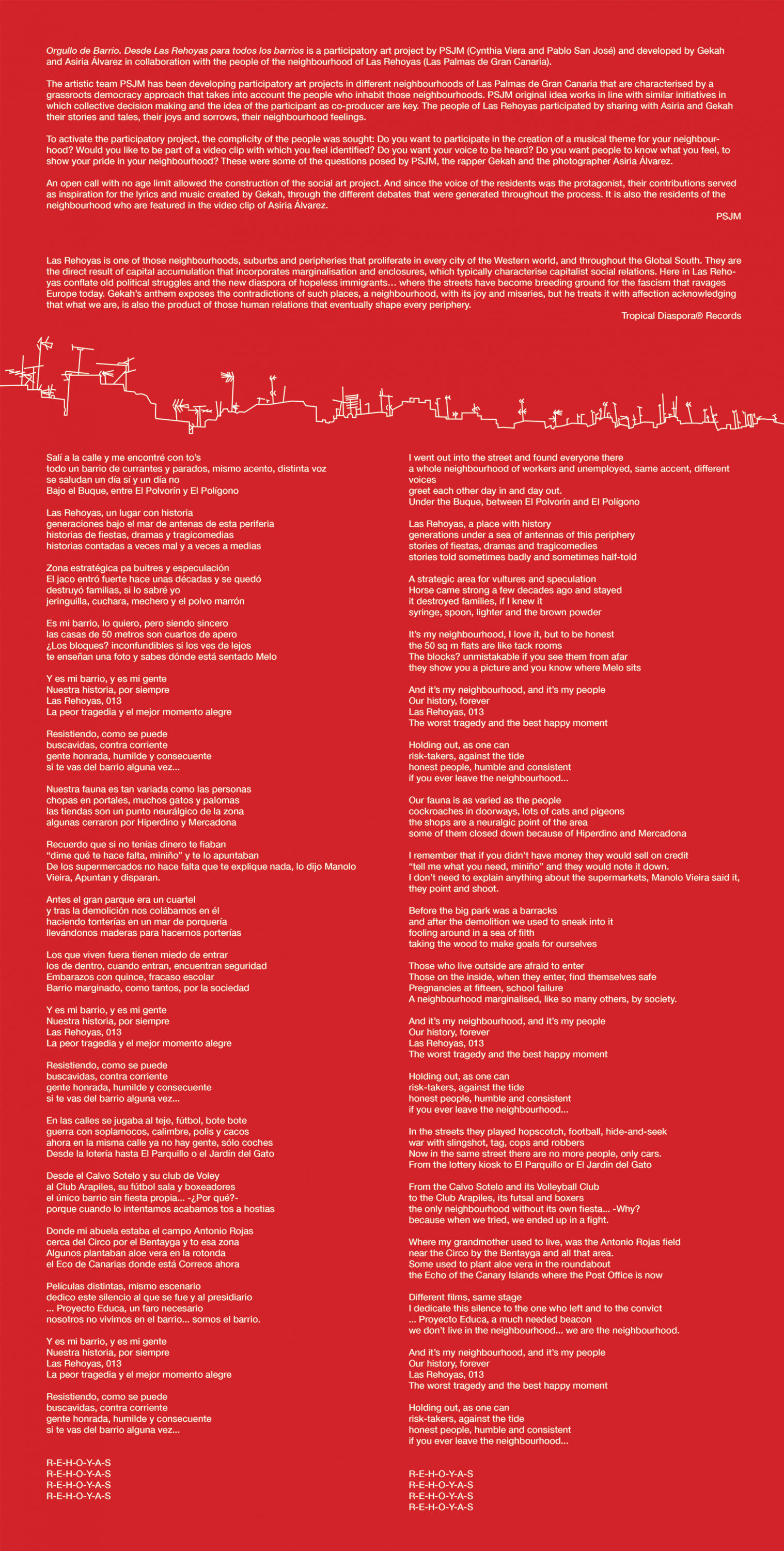 Alberto Gekah’s “Orgullo de barrio” – hip hop from Canary Islands. The result of a collaborative project after an original idea of PSJM with Asiria Álvarez and the participation of the people of the neighbourhood of Las Rehoyas in Las Palmas de Gran Canarias.