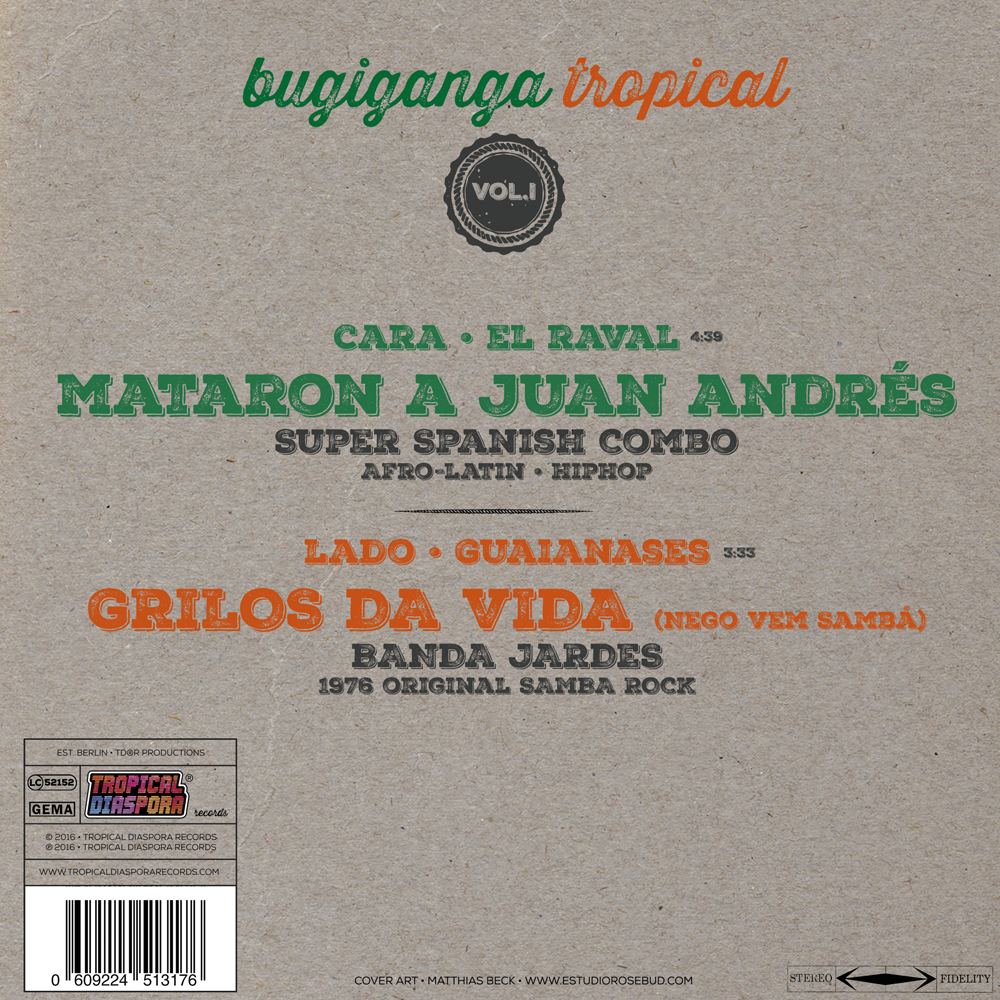 With this record we are pleased to announce the launch of our record collection Bugiganga Tropical. This is a 4 records collection with special cover designs based on Tropical Diaspora´s Records concept and realized by the designer Matthias Beck from Estudio Rosebud based in Santa Cruz de Tenerife. With plants related to the African-Diaspora peoples work in the Americas the cover art should help the beholder to remember why Africans were brought along to the Americas. For us the connection to the cultural and in our case musical legacy related to this movements from mainland Africa. This first cover art with a coffee plant remember us the kind of work Africans did in many regions in South-America, the same regions where those rhythms were created trough the interaction between Africans and or Europeans and or Native south Americans. He hope you enjoy this records as we do!