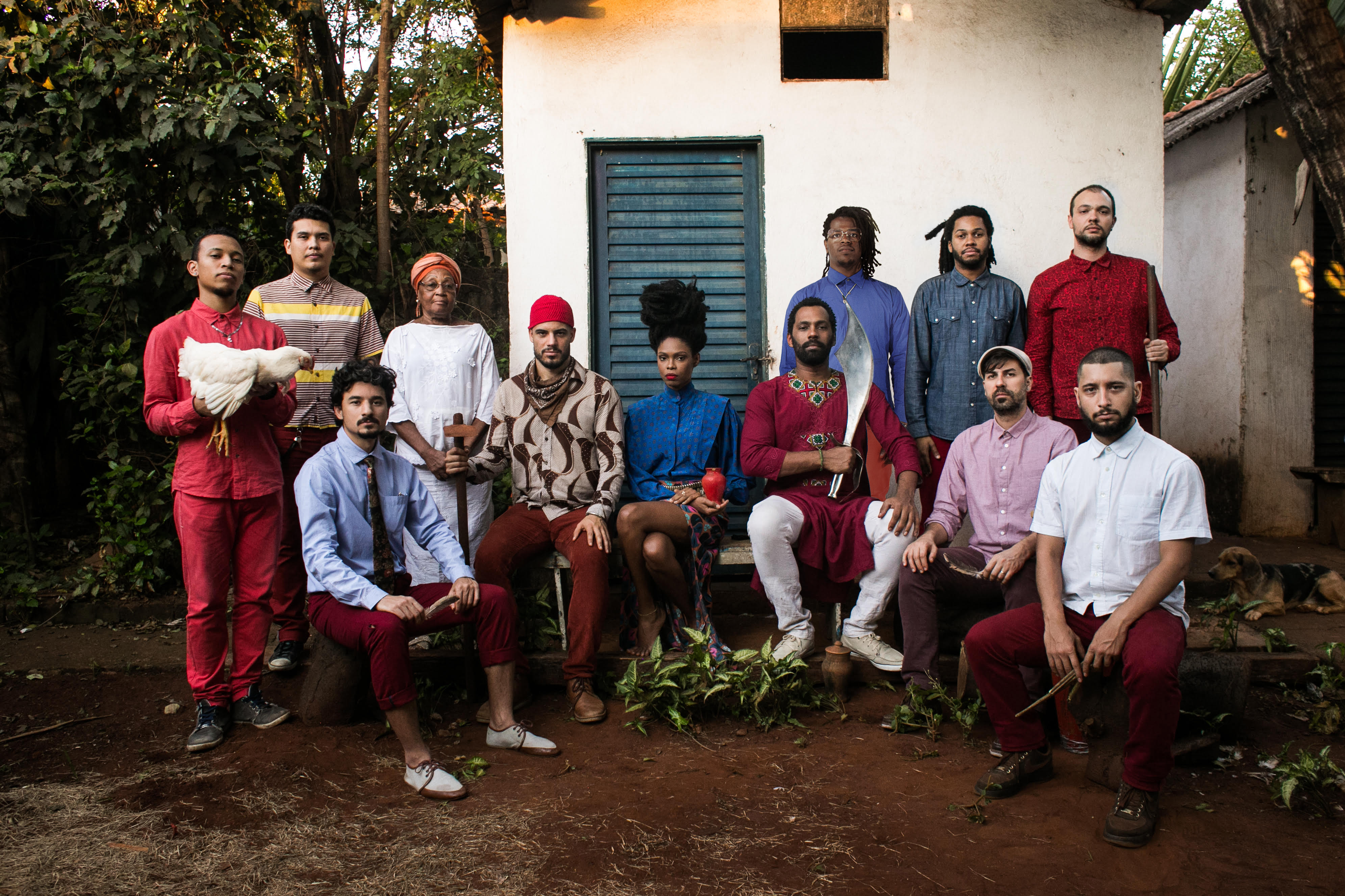 Eleven personalities assembled give rise to a dense, cosmopolitan, dancing sound. It all started back in 2011, when the Aláfia pack was heating up their affinities with a run of performances at Bar B, in the center of São Paulo. The street language, the freshness of these gatherings, and the deep liaison with the Afro-Brazilian ancestry dawned as crucial aspects to the creation of the group. Of urban nature, the troop belongs in the entranced city. Aláfia’s music (alafia, from yoruba, open ways) rises from the digestion of such diverse influences, a meeting point of rap, Brazilian pop music, funk, as well as the musicality of traditional worship yards. Rhythms and melodies shape a sophisticated lyricism that questions the current society, leaving no one indifferent.